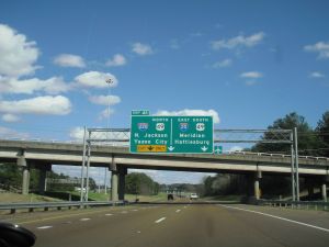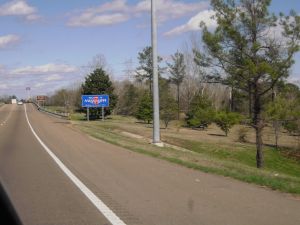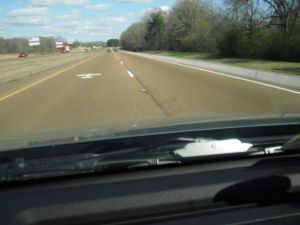 Just passed by downtown Jackson, Mississippi on our way to Alabama. We have been blessed with great weather (70’s and sunny) and we are making great time! We have passed back over the Mississippi River again, but this time in daylight. It’s a huge river! We saw a plane logo printed on the highway- neither of us are quite sure what that means. We are seeing some hilarious road signs along the highways on our trip.