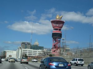 Since we took our sweet time in Talladega, we had to haul it to get to our friend Alli’s house in the evening when she was expecting us. We got to drive through downtown Atlanta, which is a much bigger city than I realized. Driving past the Olympic rings and Centennial Park was very cool. We really wanted to stop by the original waffle house, but we didn’t have the time 😦 We took 85 straight up through South Carolina and got to see the (much smaller) city of Greenville. There wasn’t too much to see from the road during this leg of the trip, however, we did see a airplane on the back of a tow truck! I am looking forward to seeing Alli- I haven’t seen her in person in over a year!