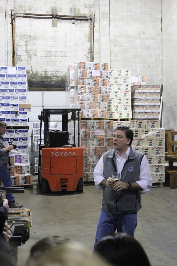 Our tour began in a large office like room with a small bar and several branded items for sale. This weekend tours were pretty large as they are being led by the founder Hugh Sisson. Hugh founded what is now known as Heavy Seas Beer in 1994 with a fellow friend and master brewmaster Ernesto Igot. (I overheard the woman in plaid behind the bar is actually Hugh’s daughter)