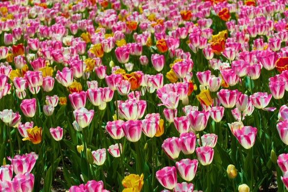 Last weekend’s great weather gave Jules and I a chance to visit the most famous tulip garden in America, Sherwood Gardens . Sherwood Gardens was created in 1920 by John Sherwood, who was a conservationist and flower fan. Located within the Baltimore City Limits, Sherwood Gardens was a quick drive from our house in Federal Hill and is located near the Johns Hopkins campus. Spanning over six acres in size, over 80,000 (!) tulip bulbs alone are planted each year alongside other spring flowers. Besides flowers, there are various types of other plants, such as English Boxwoods, that date back to the 18th Century!