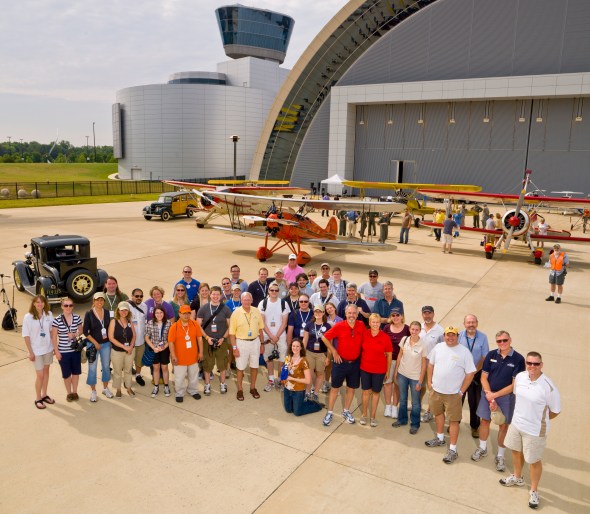 Once all the planes were parked (apparently it’s quite easy to parallel park a A-10 Warthog) we hustled inside to recharge, grab breakfast, and meet one of the heads of the museums before we went back outside for a group picture. The group picture was taken by a photographer (not me silly) on a lift with the Spirit aircraft in the background which was being donated that day to the Smithsonian. The photographer was using a Hassleblad camera to take our picture. This was the first time I’ve ever seen one used in person. Sadly, I didn’t get a chance to see the Hassleblad close up or even ask him about it.