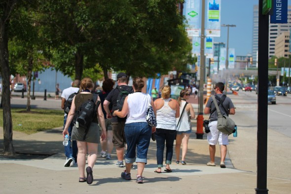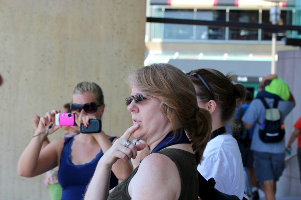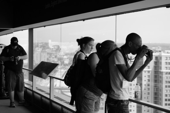 We met outside a parking garage around 11 on Sunday, introduced everyone to each other, and got to taking pictures. We stopped by the Top of the World exhibit in the World Trade Center (twice actually), the John Brown ship that was temporarily in the Inner Harbor that weekend, and wandered by Otakon on our way to Camden Yards. During that time we stopped wherever we could to take advantage of the A/C and to rehydrate. The entire time we were taking pictures and getting to know each other better. The level of equipment varied: from point and shoot cameras to pro bodies; kit lenses to L series equipment; and tripods to reflectors.