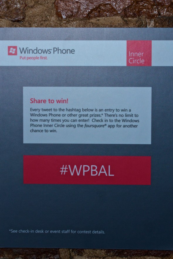 This week I was fortunate enough to attend one of the Windows Phone launch events in Baltimore, MD. Held at the Pratt St. Alehouse (a place I have previously visited), this event was a gathering of the Windows Phone marketing crew showing off their new phones and the features of the newly released Mango operating system. Using Twitter and Foursquare they held a drawing for a few products such as Windows Phones and Xbox games. It was a total blast to attend for a number of reasons.