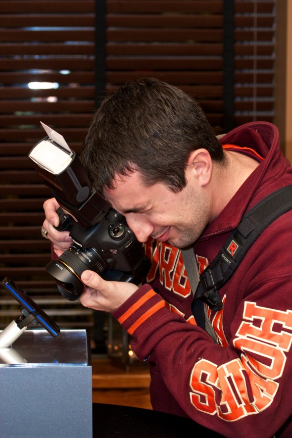 I convinced my buddy Zach to go with me to check out the event. Upon arrival we were greeted with drink tickets and checked in on Foursquare. Then, we started to wander around checking out the phones. They had all the various models on display with some very cool portable display stations. I happened to stop by to take pictures of the HTC Titan, the largest Windows Phones available. I had read the review of the Titan on Engadget, and since the phone wouldn’t be available to the public until Novermber 20th, I was anxious to check it out in person. By sheer luck, I also managed to win one in the drawing! (Zach ended up winning one as well)