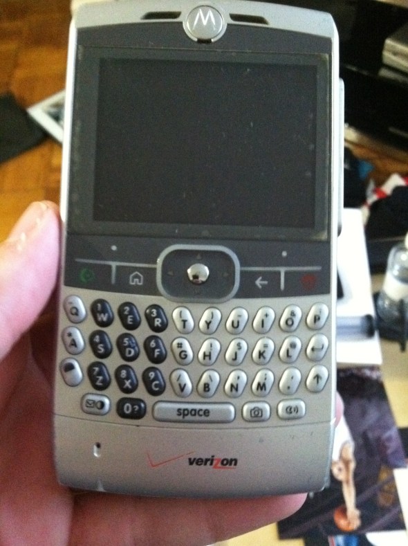 Around the time I graduated from Ithaca College in early 2007, I was looking to upgrade my “dumb phone” to something more functional/professional. Ryan came with me when I went to the Verizon store to find something better. Since a full keyboard was on my list of must-haves, it narrowed my options quite a bit. I passed on the BlackBerry since I thought (probably incorrectly) that it wouldn’t be as functional as something else like Windows Mobile. I ended up deciding on the Motorola Q which was running Windows Mobile 5.0 Smartphone Edition. The Q had a keyboard, my email, and it looked a bit more professional (since I was soon heading into interviews). Little did I know that by not doing my research, I was doomed to hate the phone.