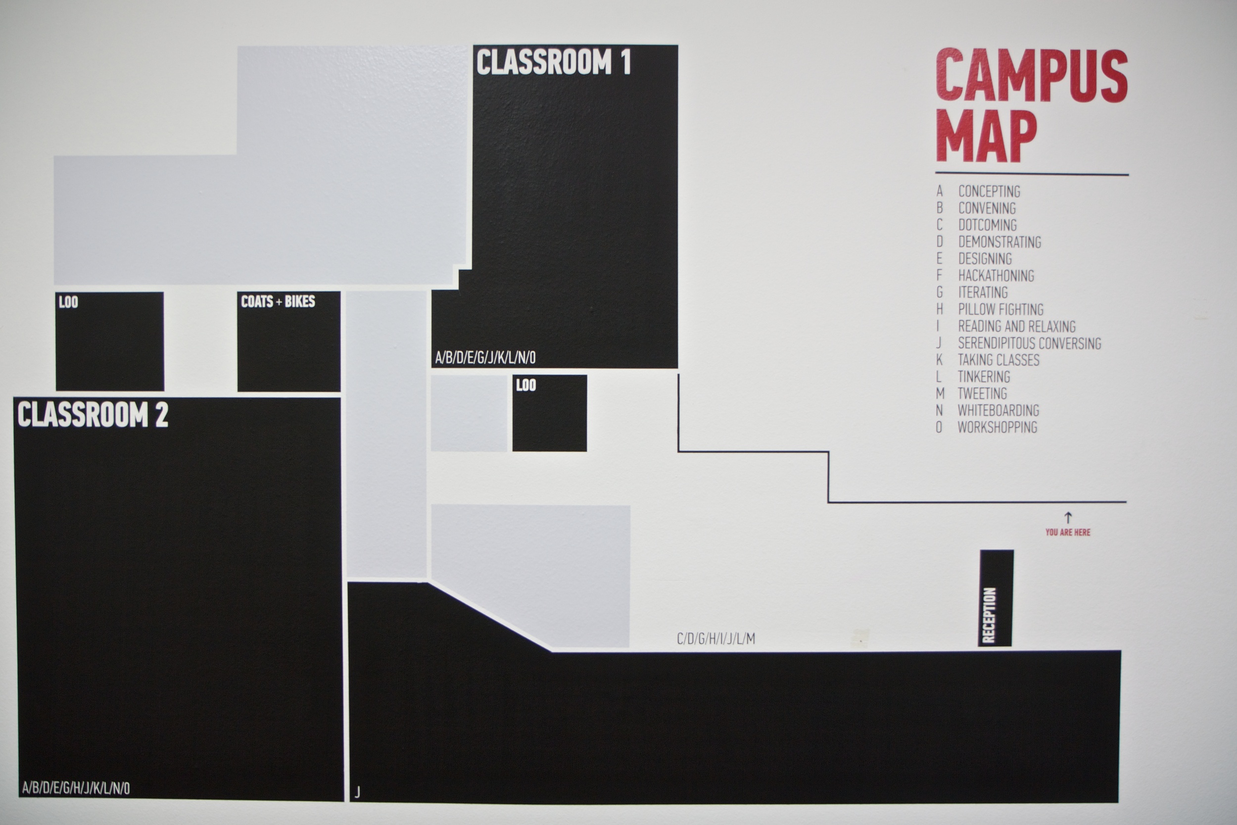 It was a very good decision. The SF chapter of General Assembly has been in San Francisco as long as Jules and I have (since the summer) so they are working on generating awareness. Their working space in San Francisco is very modern- lots of open spaces, contrasting paints, and large vinyl decals. I ended up joining a group of 30+ people and most of them were new to the Bay Area.