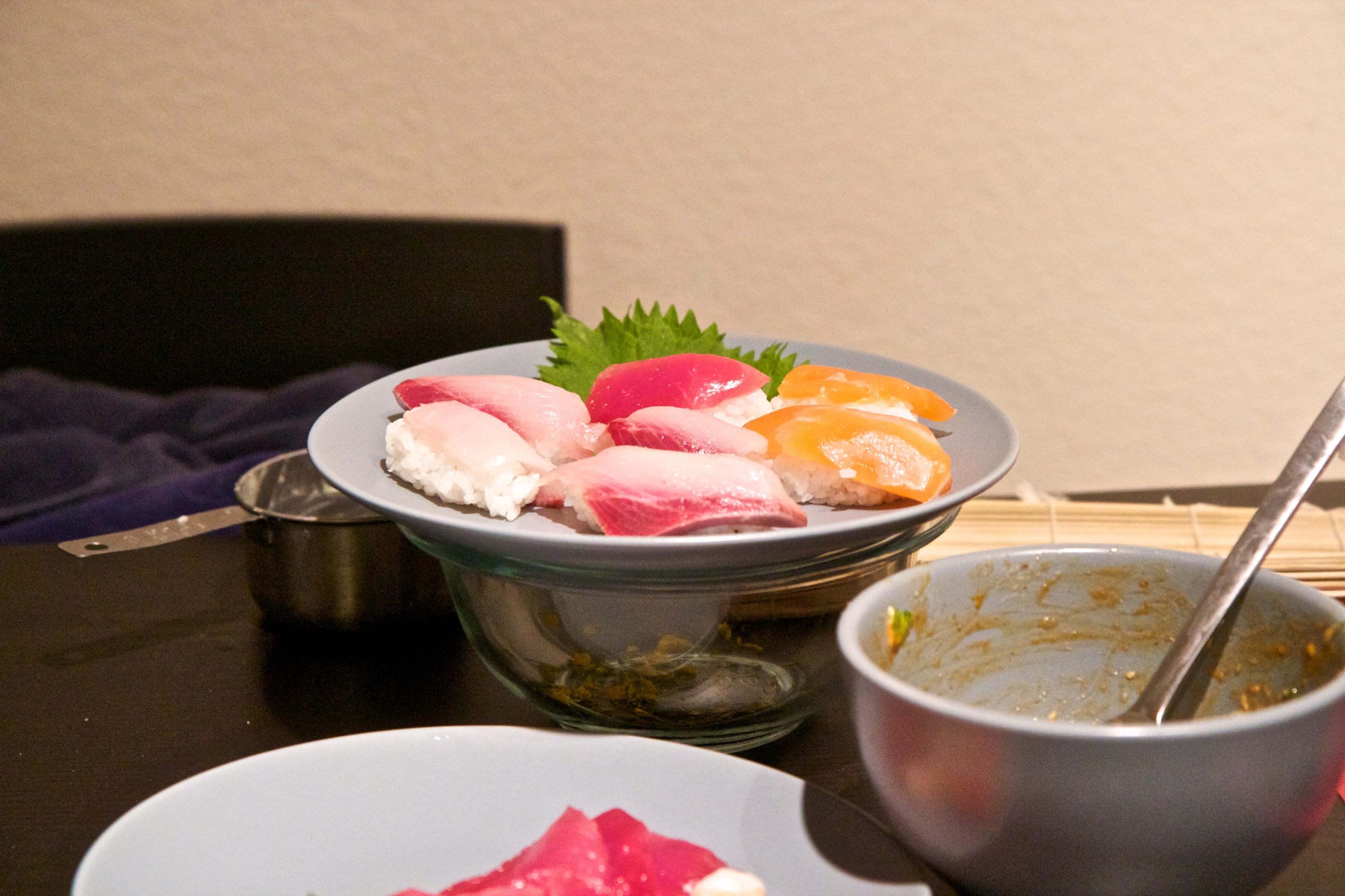 Parts of the class were easier than others- it’s safe to say my hand rolls and rolling skills still need work. Learning how to make Miso soup from scratch, different types of truffle oils you can use, and making the tuna tartare was some of the highlights of the evening (for me). However, everything we made tasted amazing!