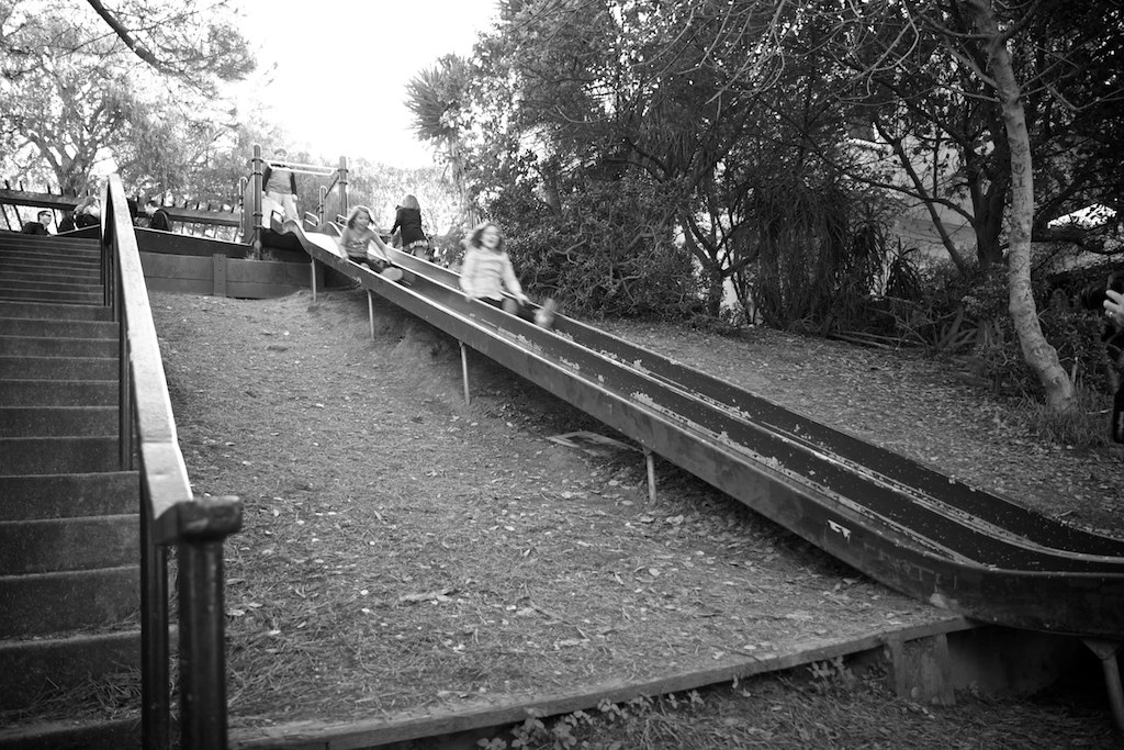 Jules and I packed our cameras and ourselves into the car and headed up to Bernal Heights to meet up with other Flickr users and employees. We met at a secret slide (no joke) in the neighborhood and walked around the area taking pictures. We even had a huge group photo taken on the hillside of Bernal Heights Park (by none other than Thomas Hawk himself).