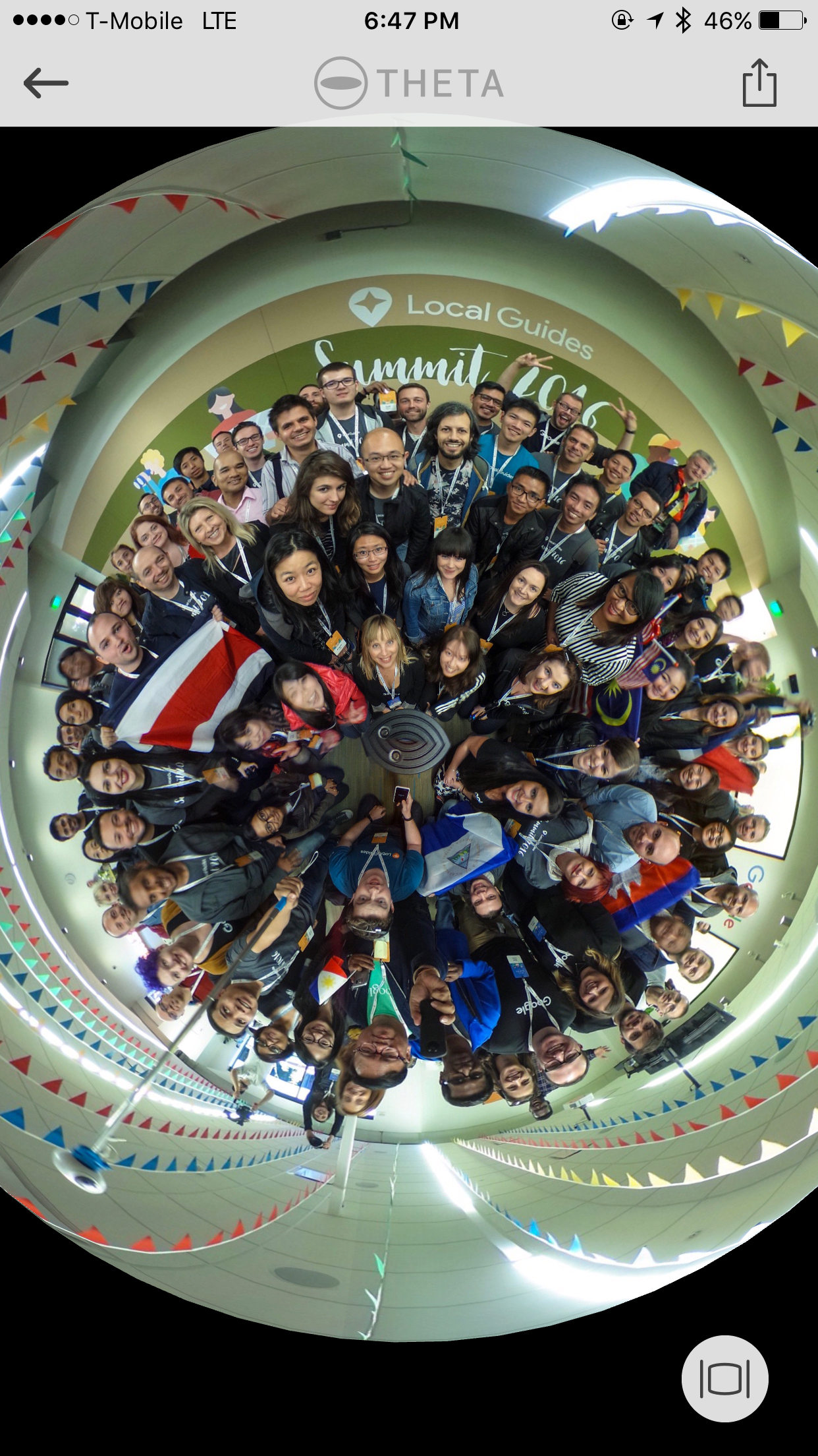 At this point, it was time for our closing party. Hard to believe we accomplished so much in the last two days and it was great to talk with other people while having fun with photo booths and bowling. During all parts of this trip I got to run into and talk with other Local Guides and I’m so honored/proud to be part of such a great group. We capped off the night with an award session and I was quite surprised to see my photosphere from yesterday (edited into a “Tiny Planet” view) win an award! You can check out the photo below.